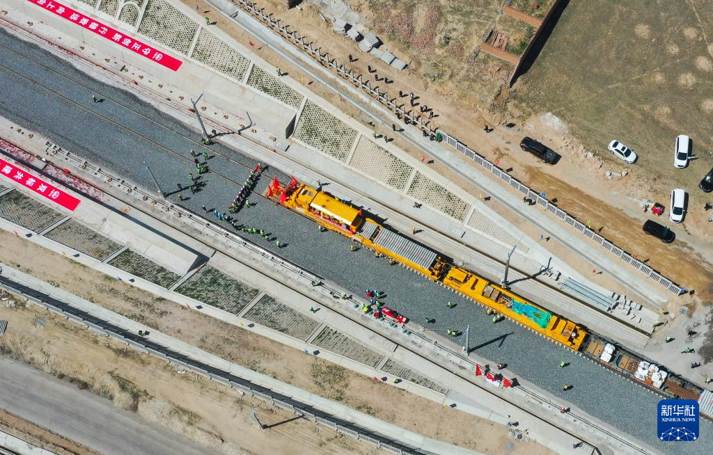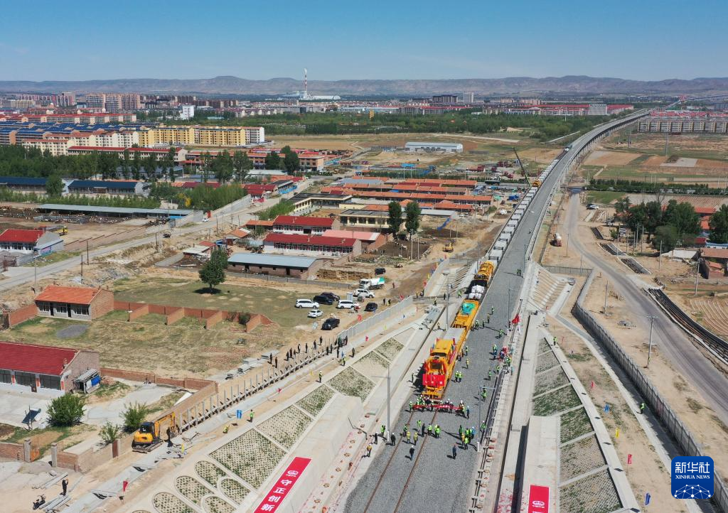 当日,在内蒙古乌兰察布市丰镇市集大原高铁(集宁经大同至原平高速铁路)建设现场,铺轨机在自动铺设轨枕、铁轨,工人在岗位上有序忙碌,这标志着集大原高铁全线开始铺轨。集大原高铁是我国“八纵八横”高速铁路网呼南通道的重要组成部分,预计2024年底具备通车条件。