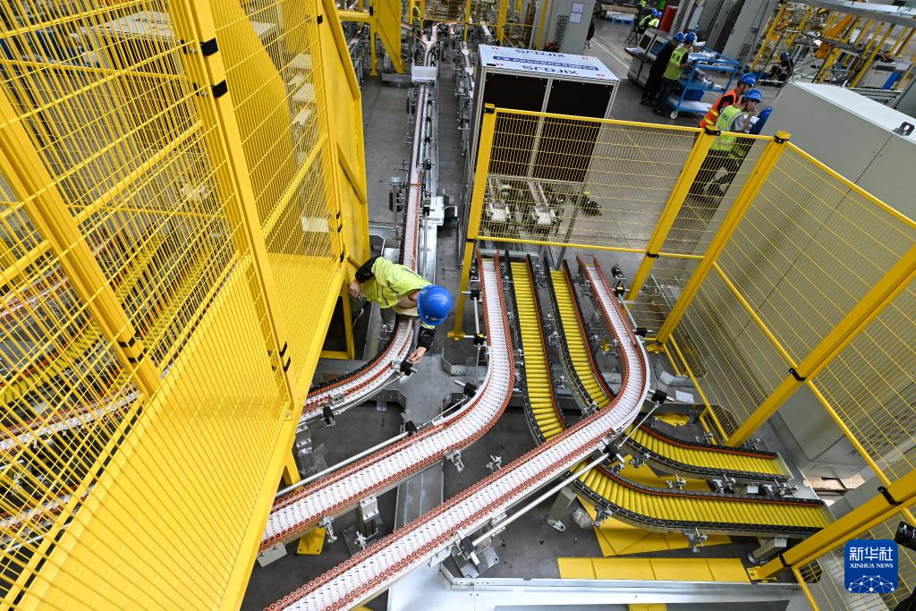 在烽禾升集团昆山总部生产基地,工作人员在安装设备(5月15日摄)。烽禾升集团是一家专注智能制造的自动化设备供应商,是国家高新技术企业、江苏省专精特新中小企业。