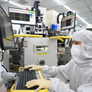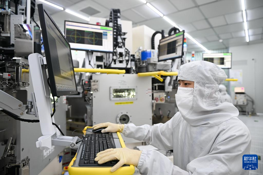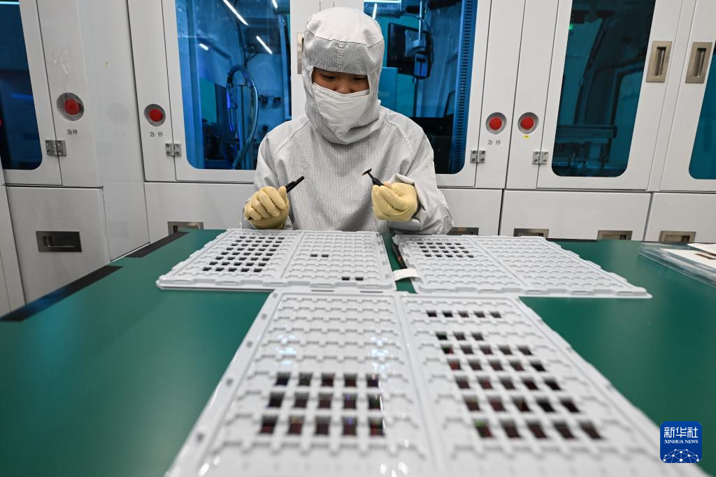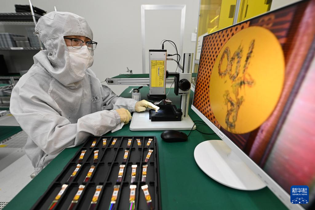 在苏州清越光电科技股份有限公司模组车间,生产人员对硅基OLED微显示产品进行检测(5月15日摄)。该公司为国家级专精特新“小巨人”企业,产业化成果曾荣获国家制造业单项冠军产品称号。