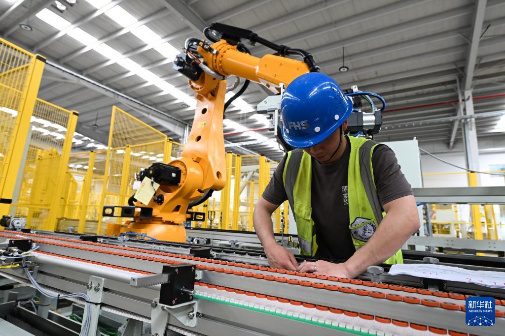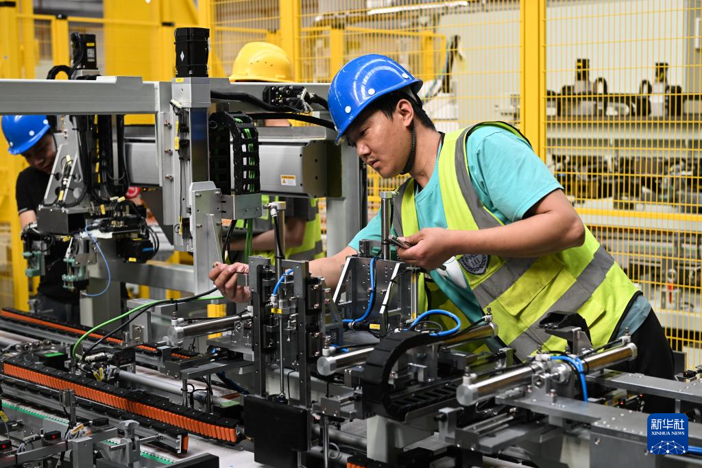在烽禾升集团昆山总部生产基地,工作人员在安装调试设备(5月15日摄)。烽禾升集团是一家专注智能制造的自动化设备供应商,是国家高新技术企业、江苏省专精特新中小企业。
