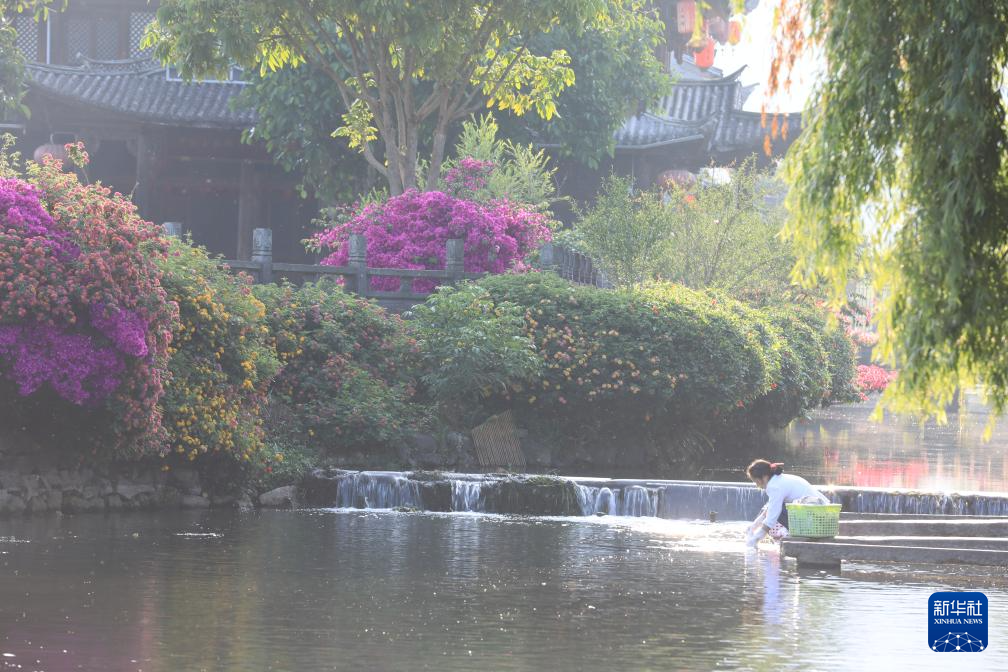 5月15日清晨,在云南省腾冲市和顺镇,一名妇女在和顺河畔洗衣服。