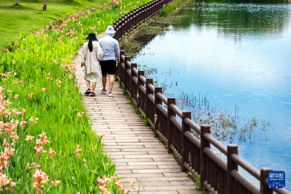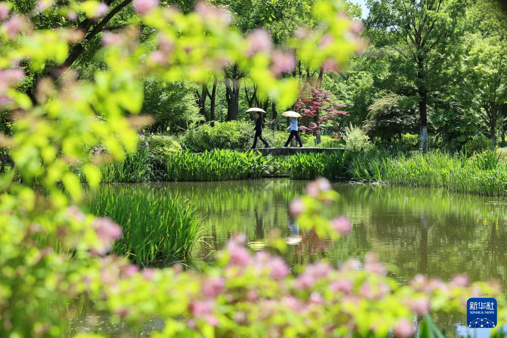 5月14日,市民在浙江省温州市龙湾区钟秀园游玩。