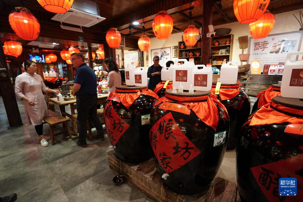 游客在平遥古城一家醋坊参观(5月14日摄)。