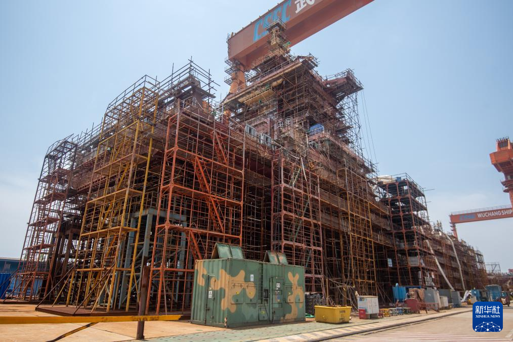 这是5月16日在湖北省武汉市武昌造船拍摄的正在进行总装建造的新船。