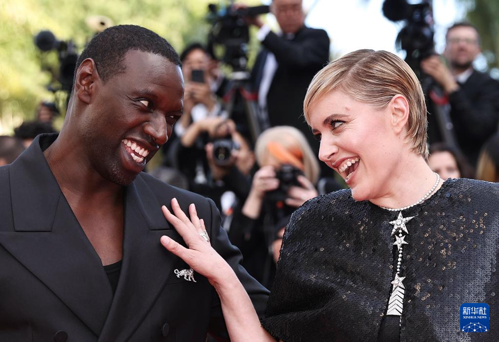 5月16日,在法国南部小城戛纳举行的第77届戛纳国际电影节上,主竞赛单元评委会主席、美国电影人格蕾塔·格威格(右)和评委、法国演员奥马尔·西出席主竞赛单元影片《大都会》的首映礼。