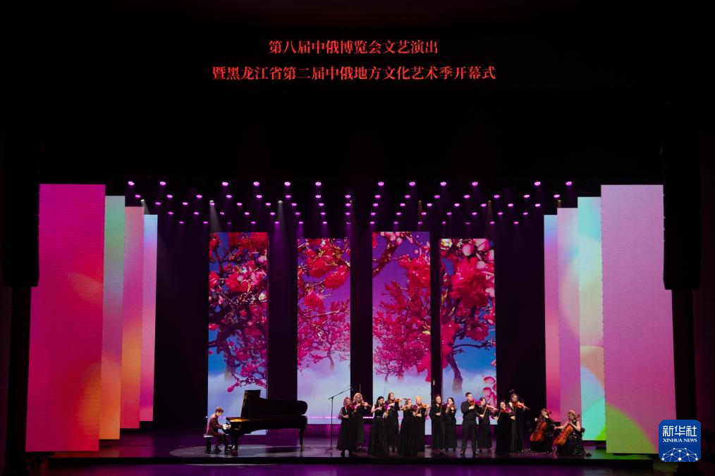 当日,第八届中俄博览会文艺演出暨黑龙江省第二届中俄地方文化艺术季开幕式在哈尔滨大剧院举行。中俄艺术家以联袂演出、融合演出、交互演出等方式,将歌曲、舞蹈、戏曲、杂技、器乐等多种艺术形式叠加呈现。