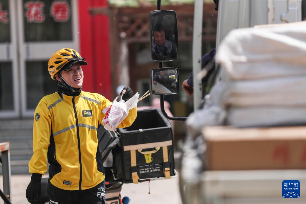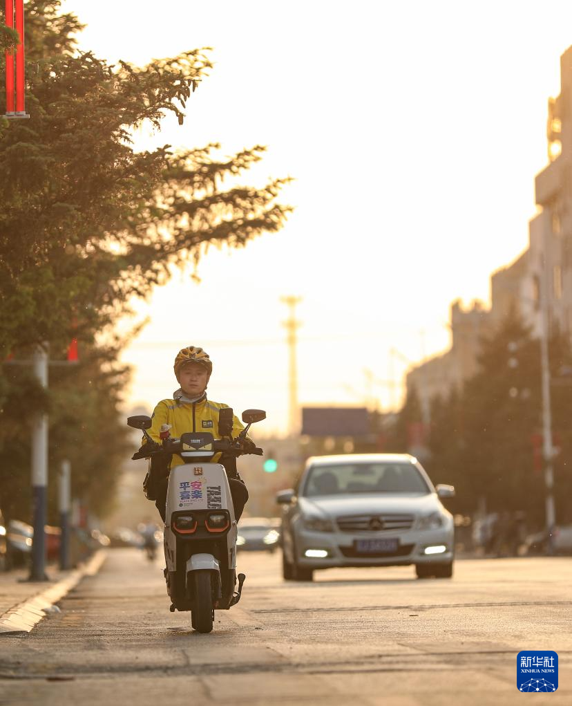 “您好,您的外卖,请慢用。”辽宁省彰武县的外卖配送员王哲将餐食送达后再次出发,继续骑行在大街小巷。