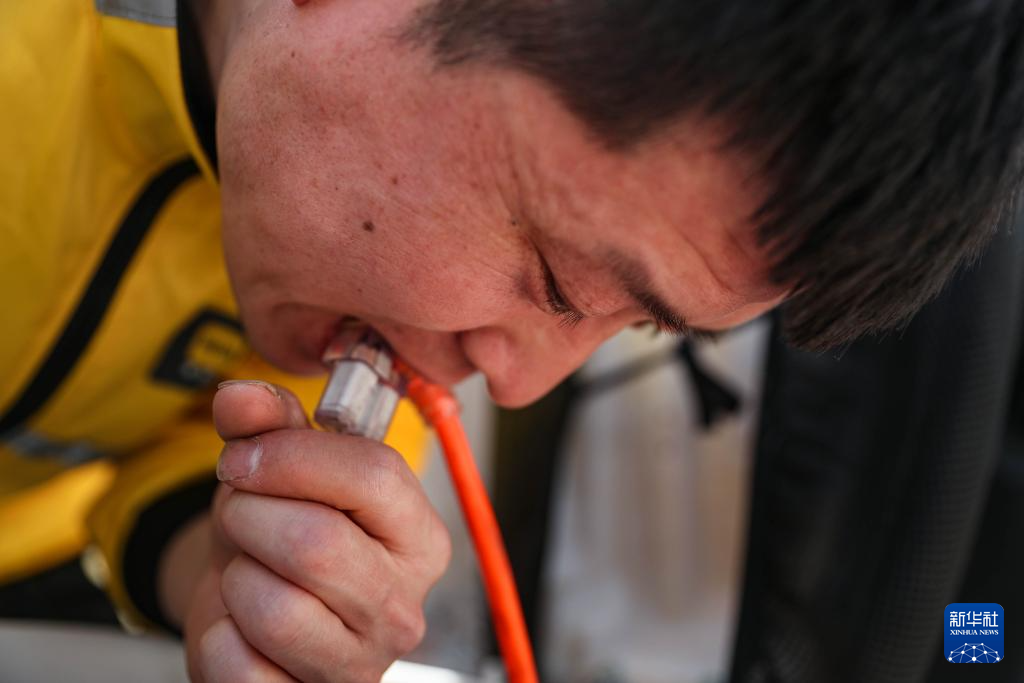 5月17日,王哲为电动车换电池,单手不便,需要牙齿帮忙。