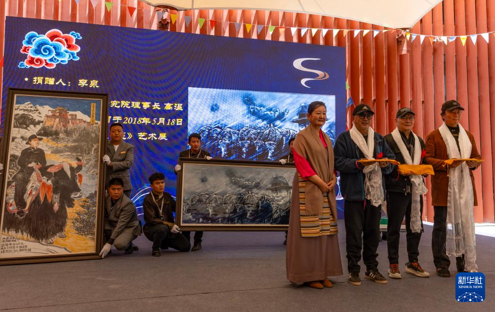 5月18日,吴雨初的友人为西藏牦牛博物馆捐赠瓷画《“亚格博”在西藏》。