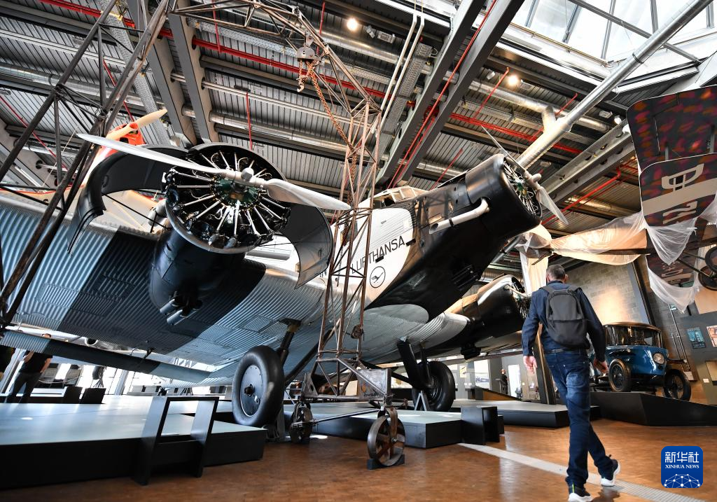 5月17日,一名男子在位于柏林的德国科技博物馆航空展区参观一架汉莎航空早期飞机。
