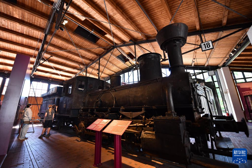 5月17日,人们在位于柏林的德国科技博物馆参观一辆蒸汽机车。