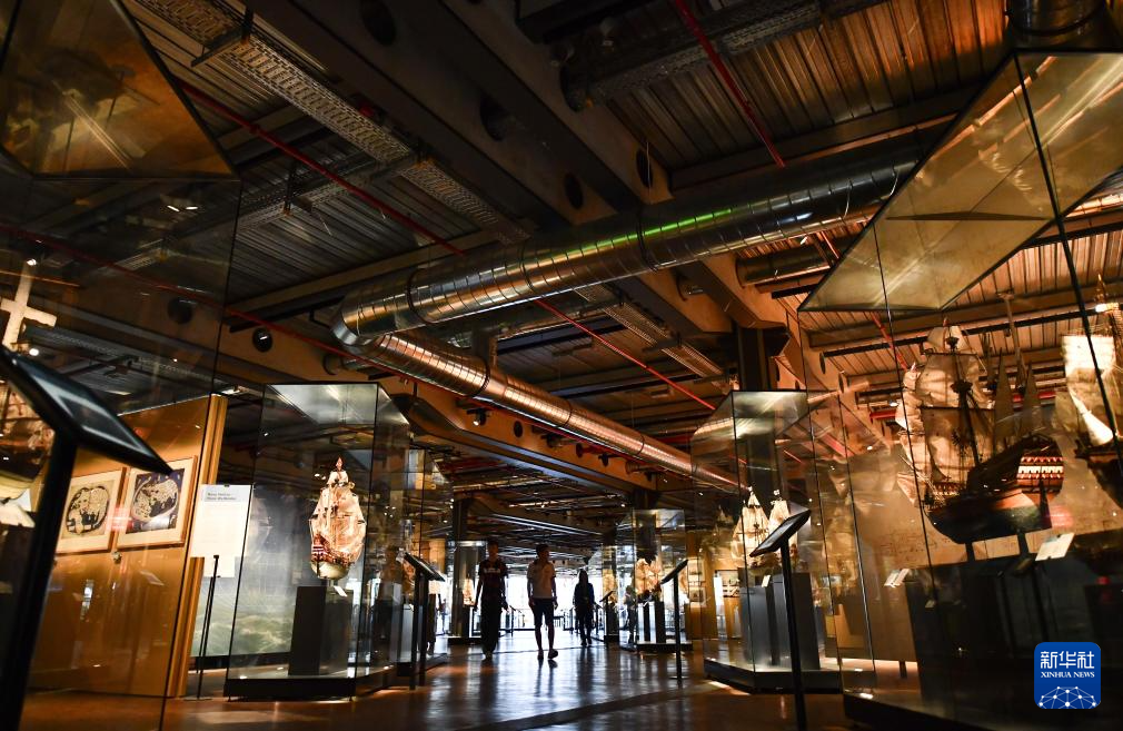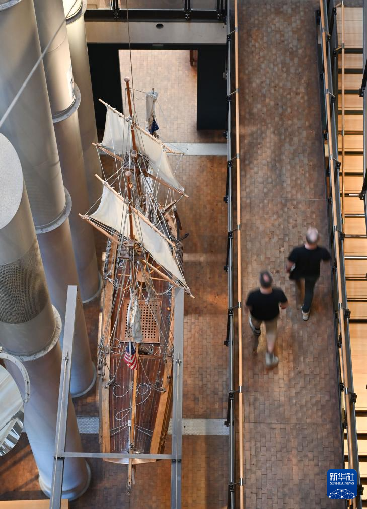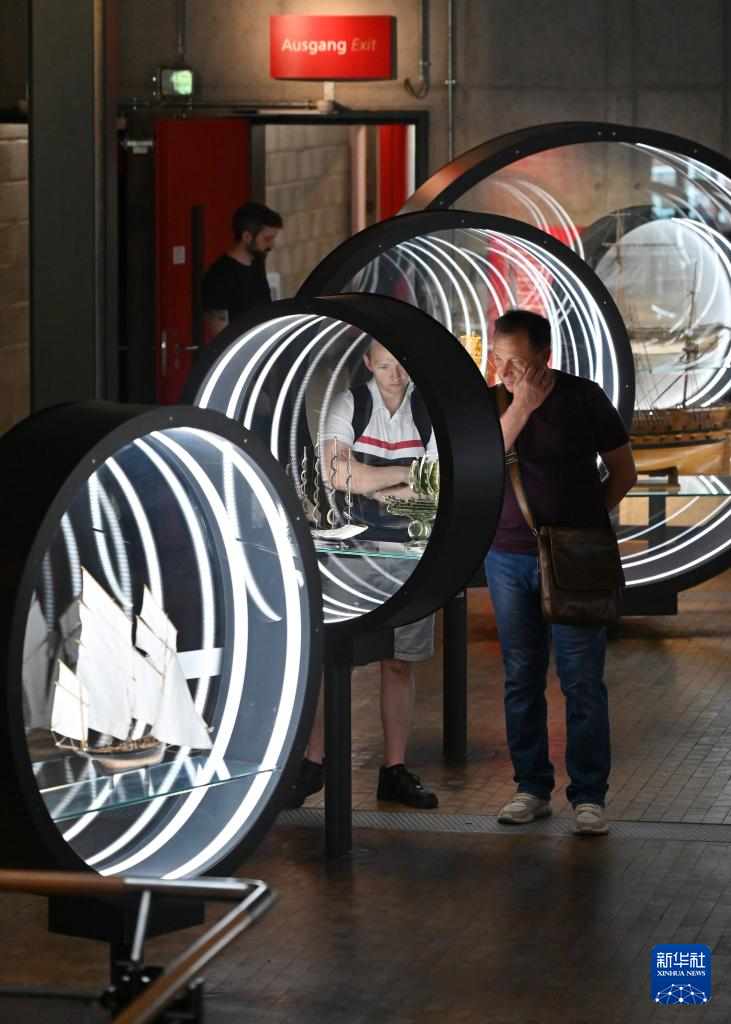5月17日,人们在位于柏林的德国科技博物馆航运展区参观。