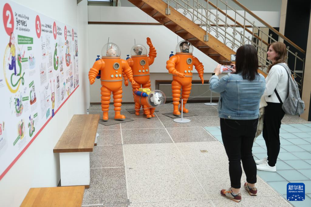 5月18日,人们在比利时布鲁塞尔的漫画博物馆参观拍照。