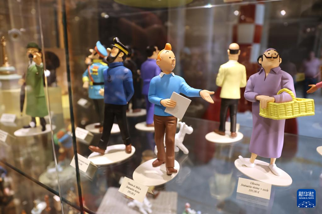 这是5月18日在比利时布鲁塞尔的漫画博物馆拍摄的丁丁系列人物玩偶。