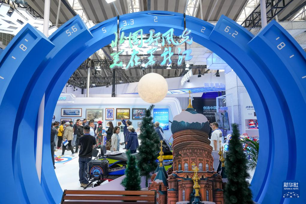 5月18日,在第八届中俄博览会现场,参会者查看2025年第九届亚冬会纪念品。