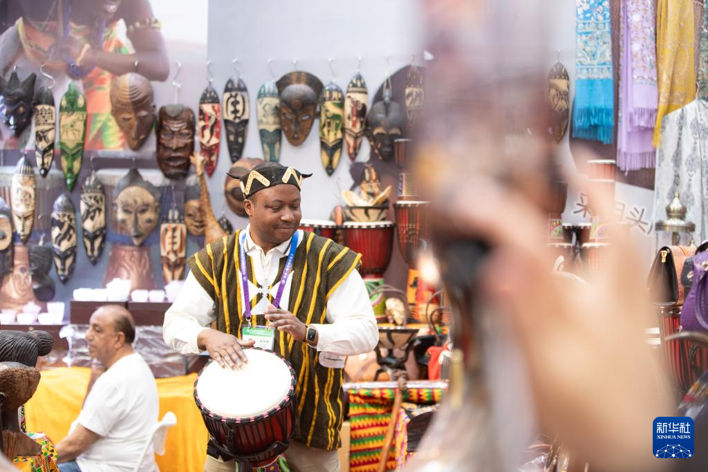 5月18日,在第八届中俄博览会现场,参展商在表演节目。