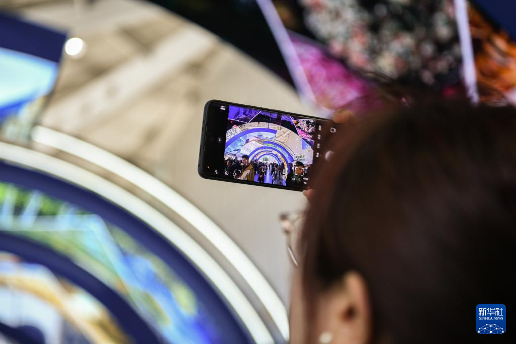 5月18日,一名参会者在第八届中俄博览会现场拍摄。