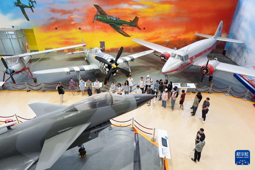 5月10日,参观者在位于北京航空航天大学的北京航空航天博物馆参观展出的歼-10A(左下)。