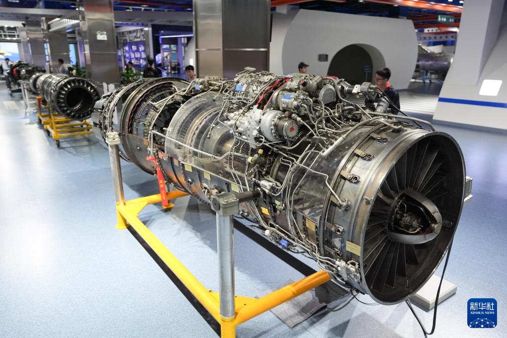5月10日,在位于北京航空航天大学的北京航空航天博物馆内,参观者在参观展出的AL-31F航空发动机。