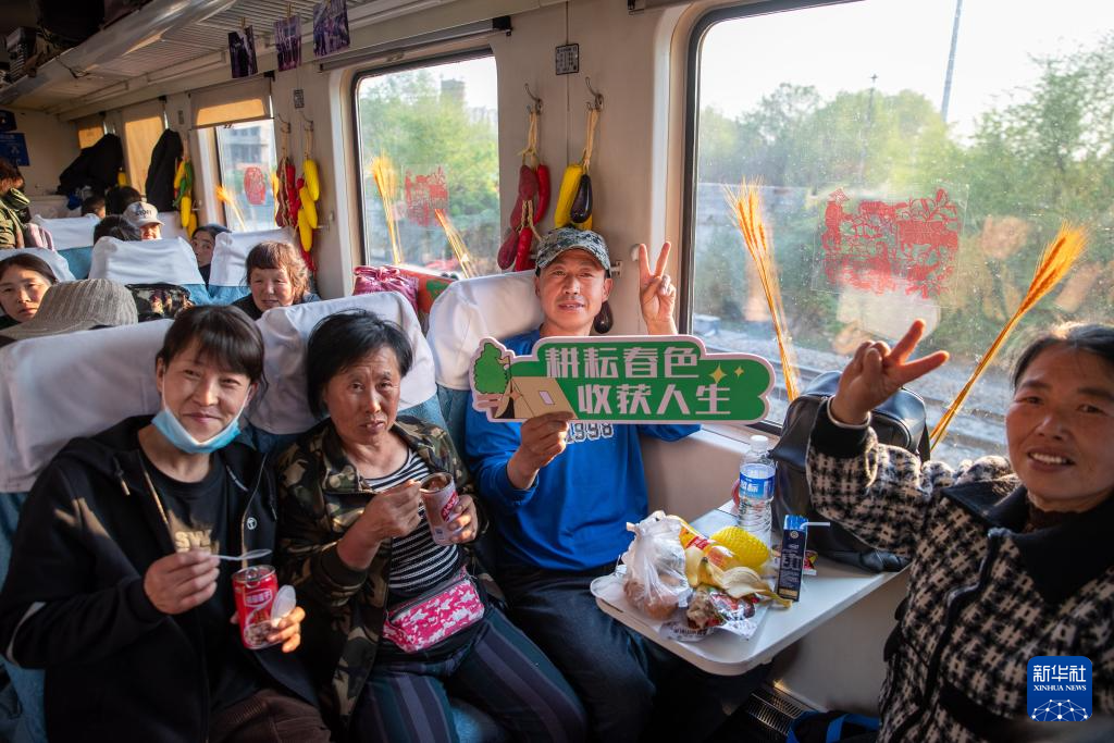 5月7日,插秧客乘坐“插秧专列”K5161次列车。