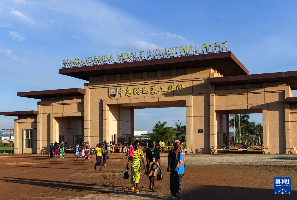 4月4日下午,在乌干达姆巴莱市,人们走出中乌姆巴莱工业园园区。
