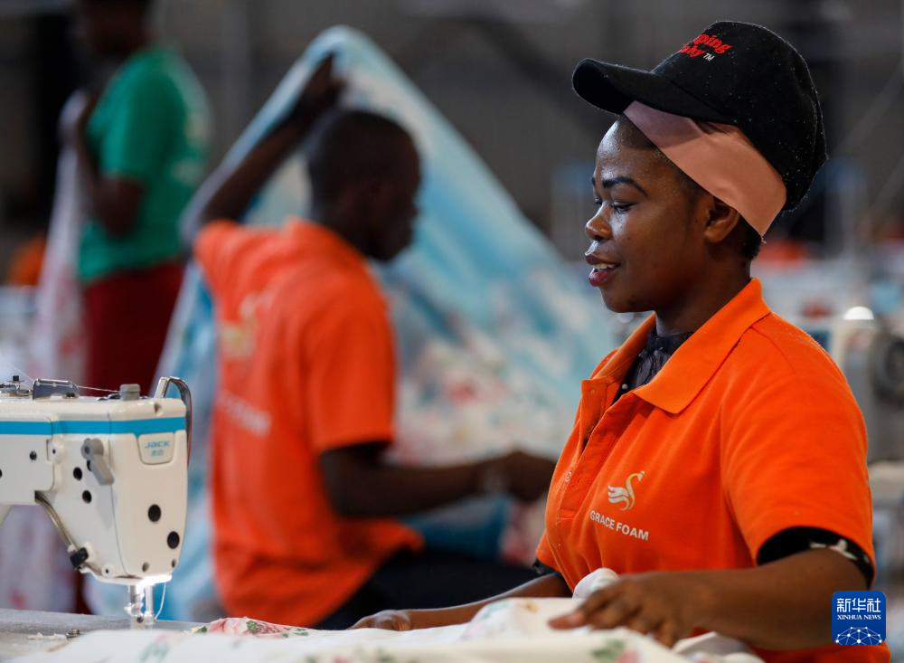 4月5日,在乌干达姆巴莱市中乌姆巴莱工业园,工人在一家纺织公司车间内工作。