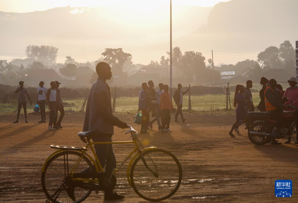 4月5日,在乌干达姆巴莱市,人们前往中乌姆巴莱工业园上班。