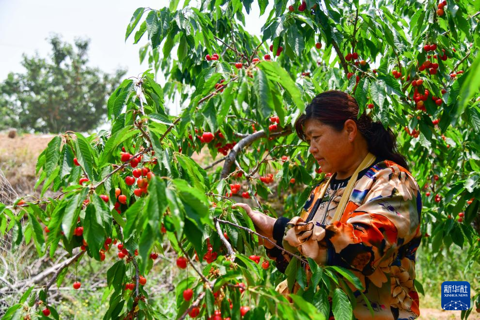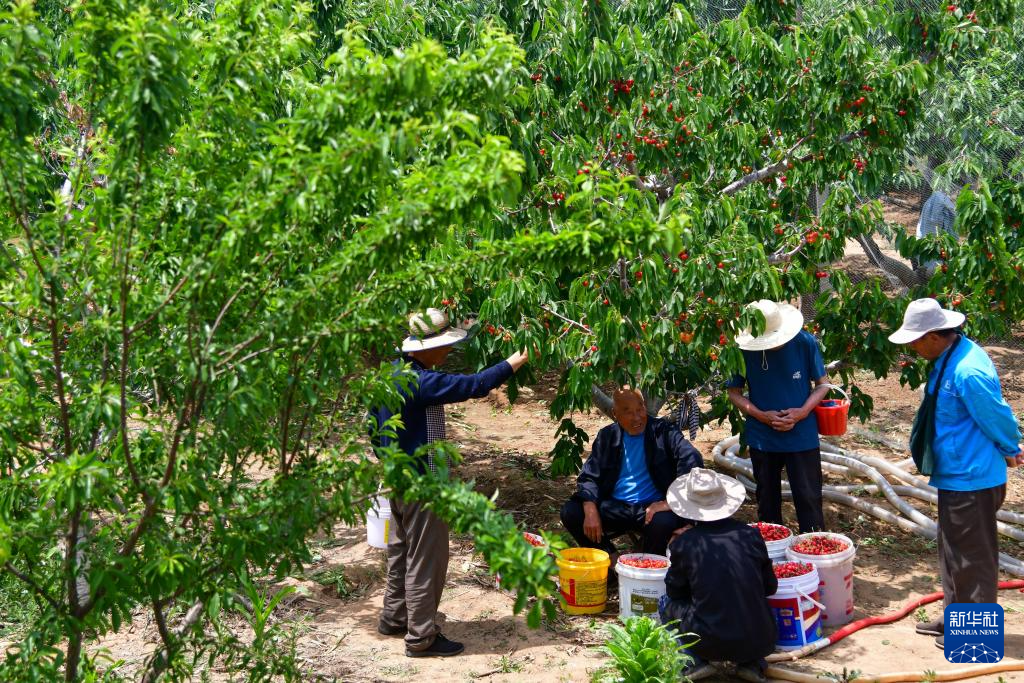 5月18日,果农在田家花峪村的樱桃基地内采摘大樱桃。