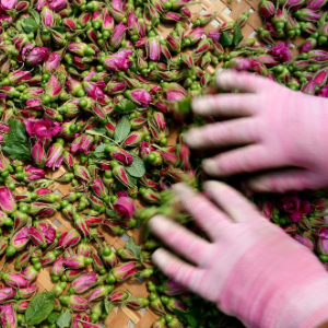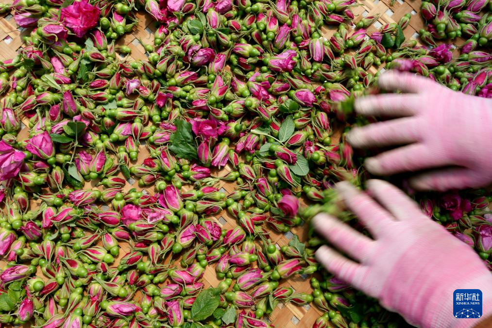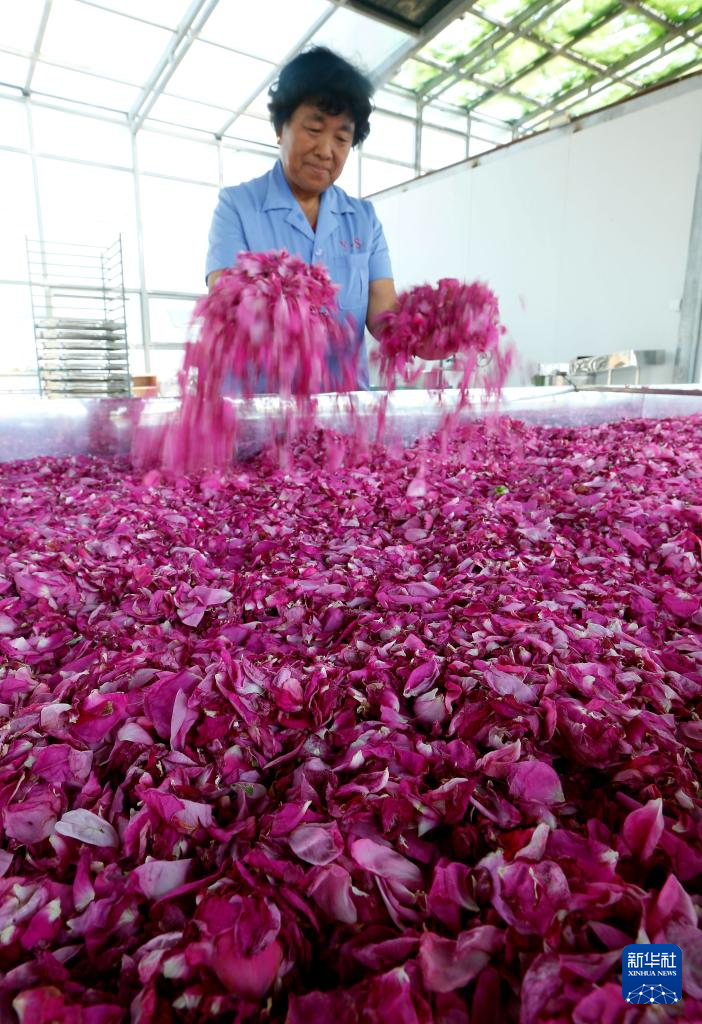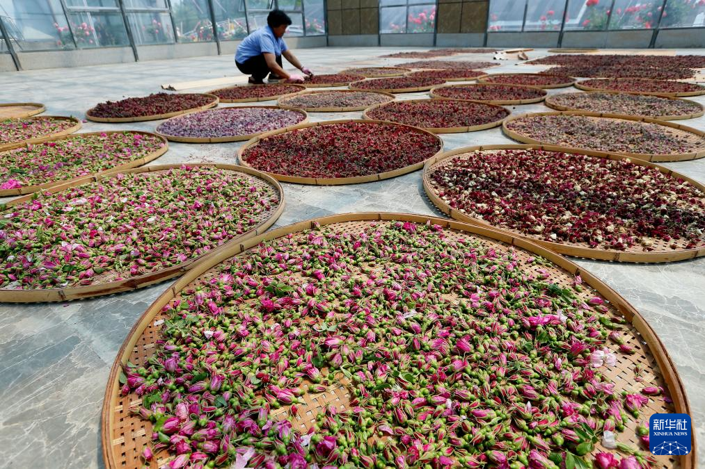 5月19日,山东省青岛市即墨区灵山街道“玫瑰小镇”产业园的农民在加工玫瑰花茶。