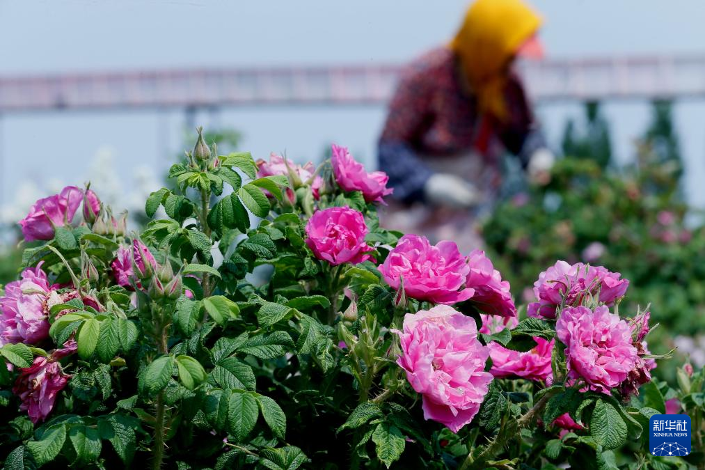 5月19日,山东省青岛市即墨区灵山街道“玫瑰小镇”产业园的农民在采收玫瑰花。