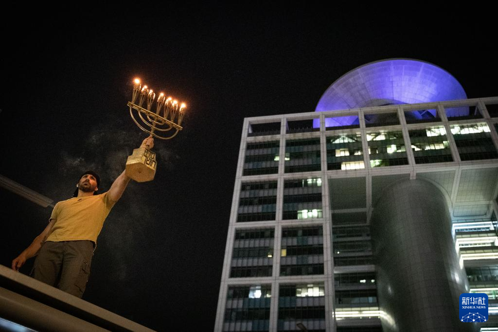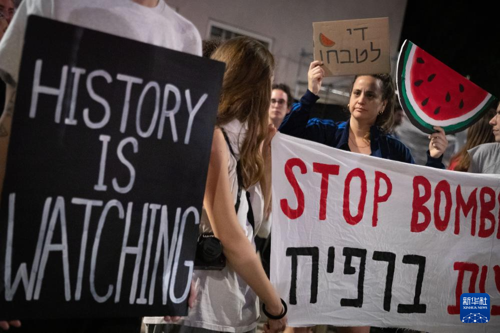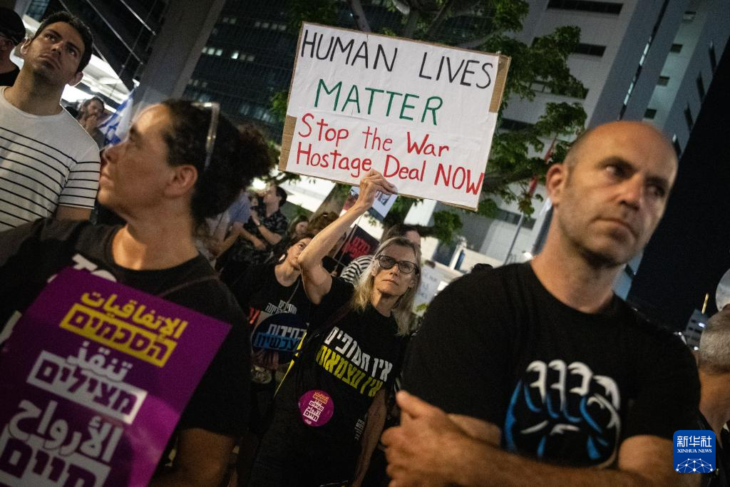 当日,以色列民众在特拉维夫游行集会,要求政府立即在加沙地带止战停火,与巴勒斯坦伊斯兰抵抗运动(哈马斯)达成协议,让被扣押人员获释。