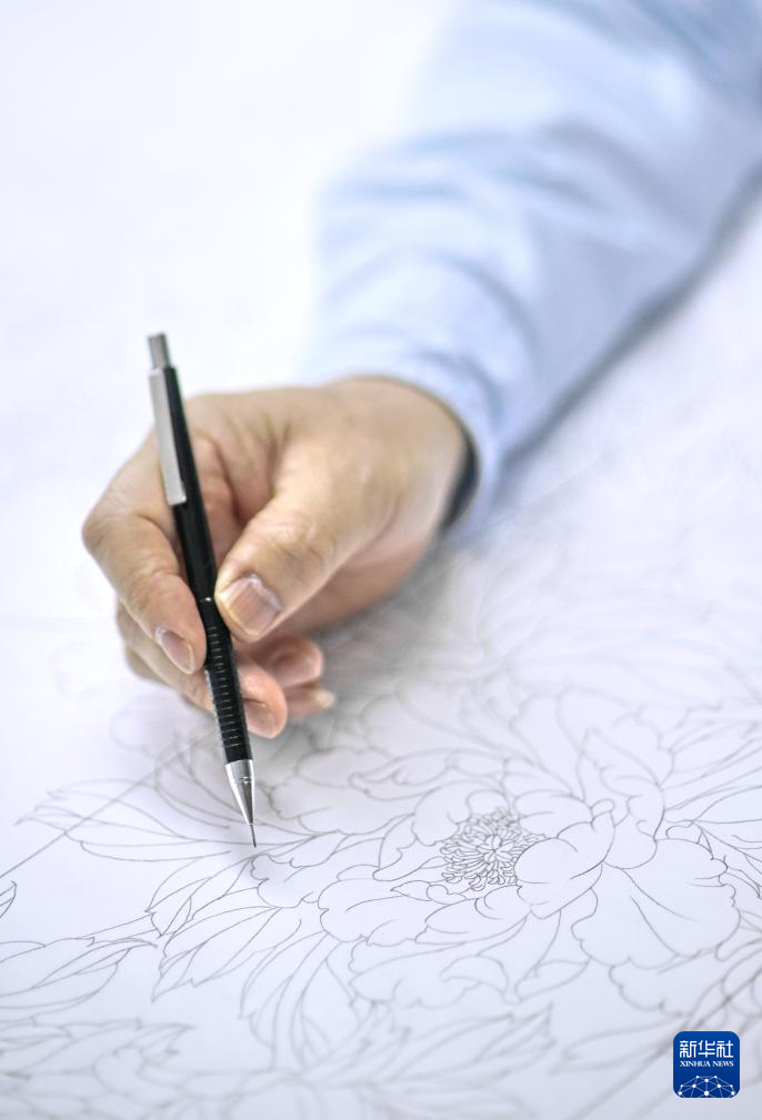 5月15日,钟连盛在他的大师工作室设计大型景泰蓝作品的图案。