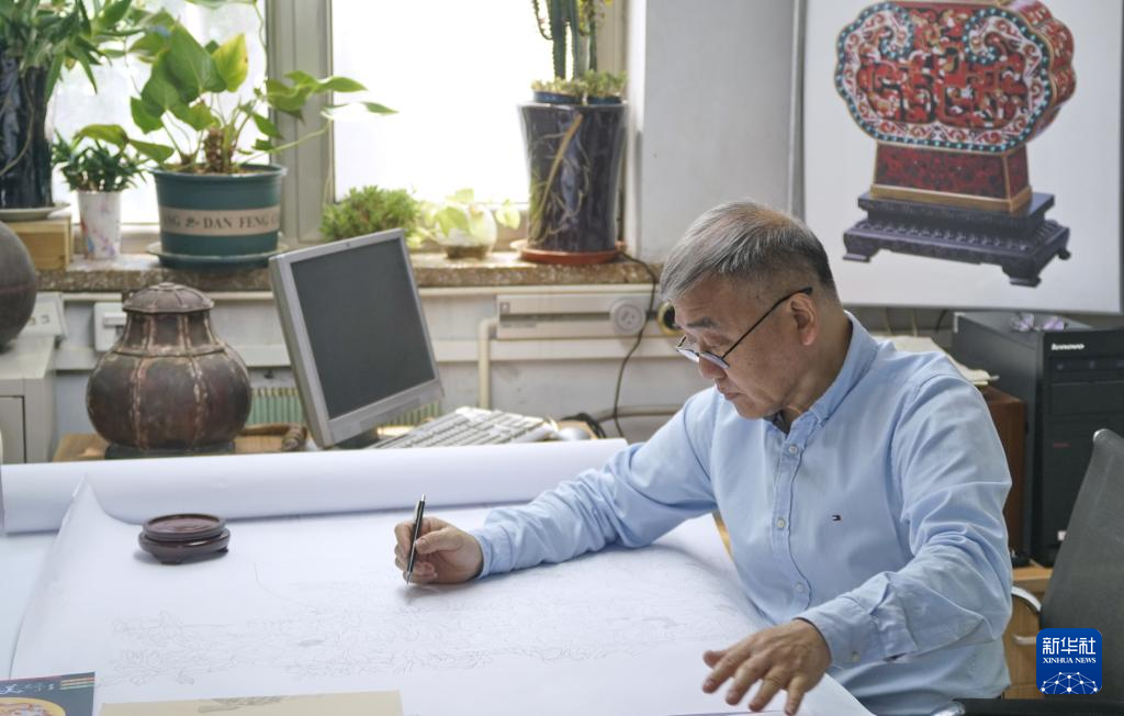 5月15日,钟连盛在设计大型景泰蓝作品的图案。