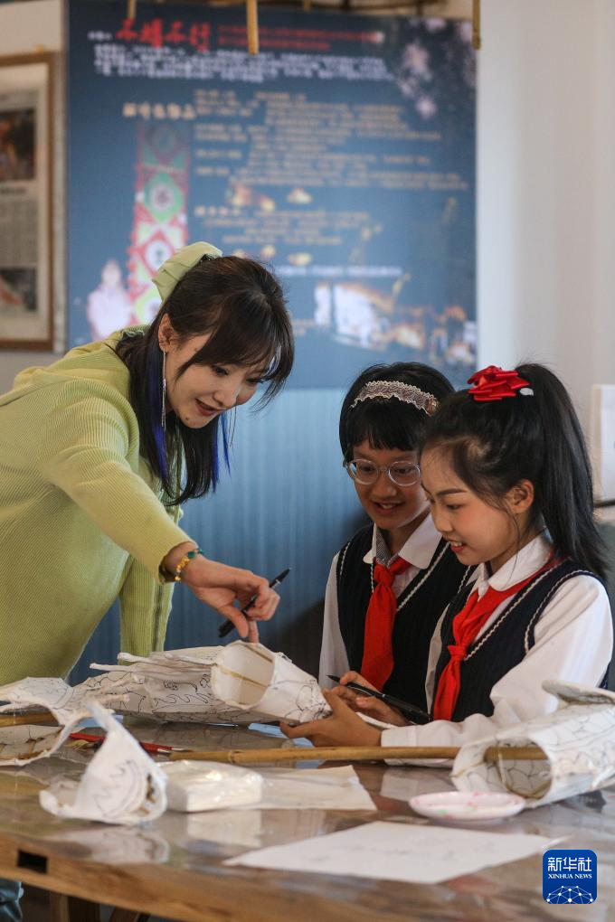 学生在黄山市屯溪区河街鱼灯馆研学(5月5日摄)。