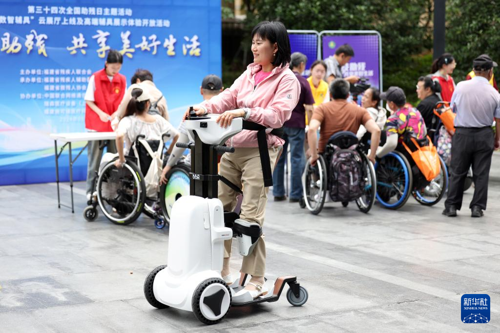 5月19日,在福建省残疾人辅助器具资源中心,残疾人在体验智能电动轮椅。