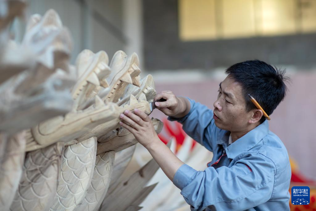 连日来,江苏省兴化市竹泓镇各大木船加工企业纷纷开足马力,赶制端午龙舟订单。兴化木船制作手艺传统而精湛,2008年,“兴化传统木船制作技艺”被选入国家级非物质文化遗产名录。