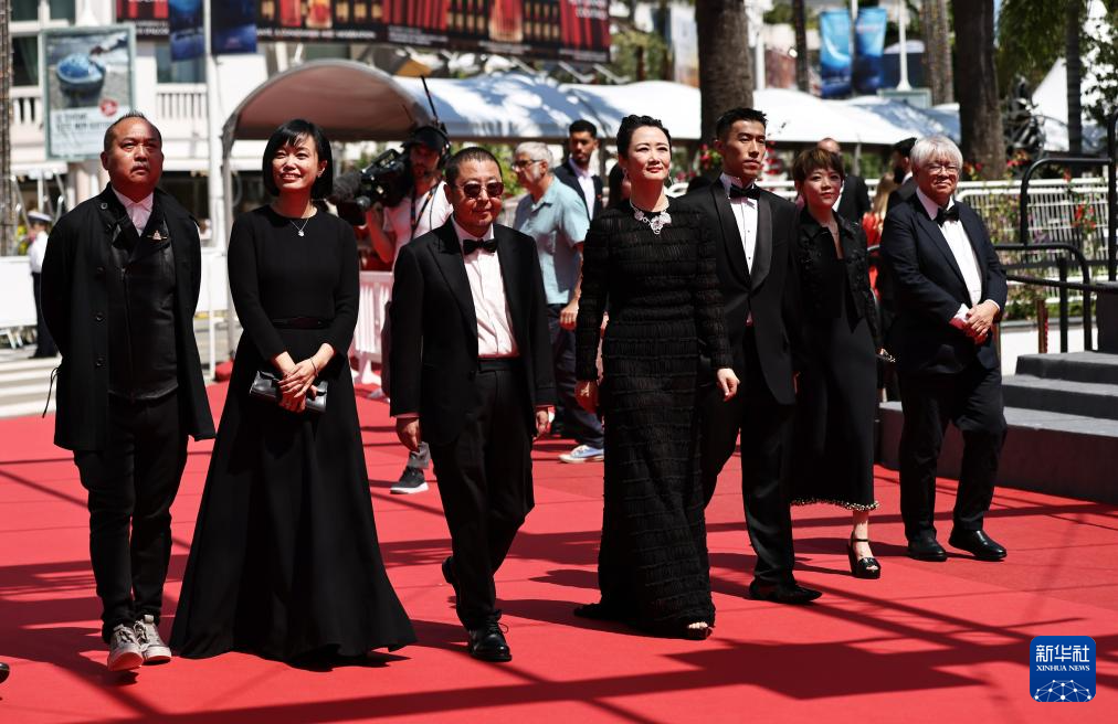 5月18日,在法国南部小城戛纳举行的第77届戛纳国际电影节上,影片《风流一代》导演贾樟柯(左三)携主创出席首映礼。