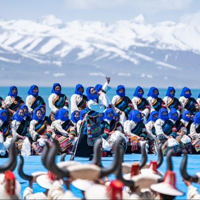 舞蹈演员在纳木错开湖活动现场表演(5月19日摄)。