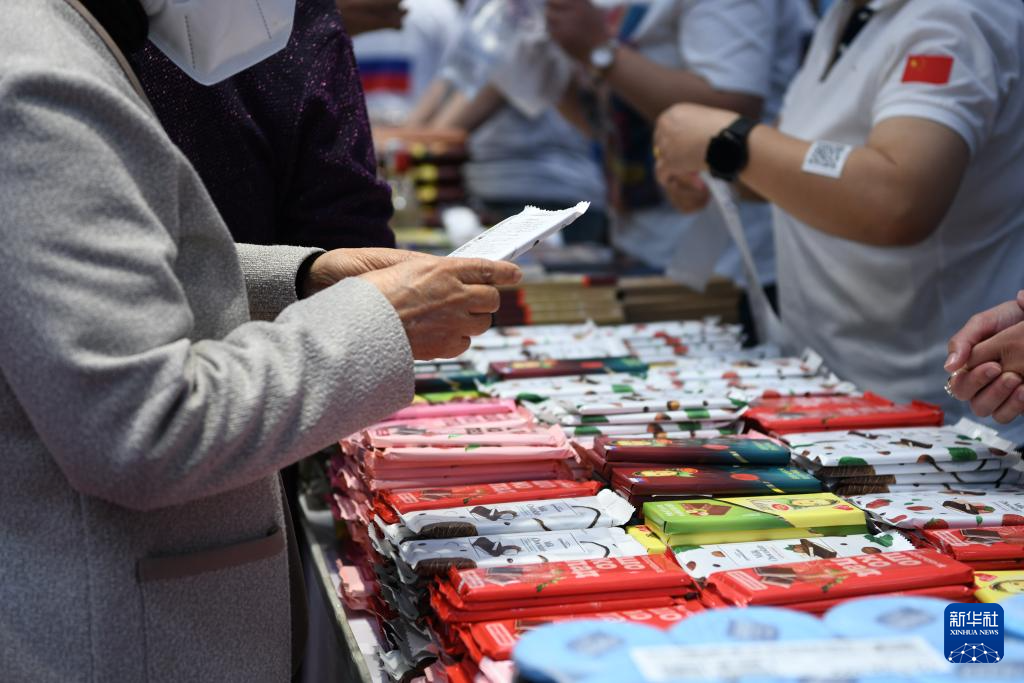 5月20日,参观者在第八届中俄博览会现场选购进口食品。