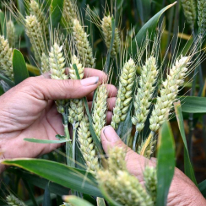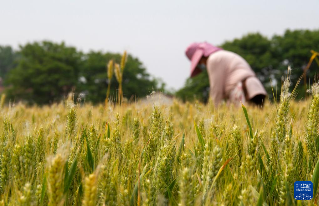 5月20日,河北省邯郸市峰峰矿区西固义乡东固义村的农民在麦田查看麦粒饱满程度。