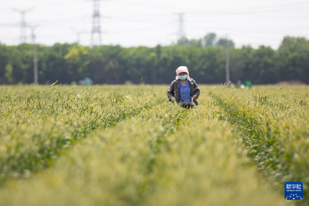 5月20日,河南省商丘市夏邑县会亭镇崔楼村村民在麦田里除杂。