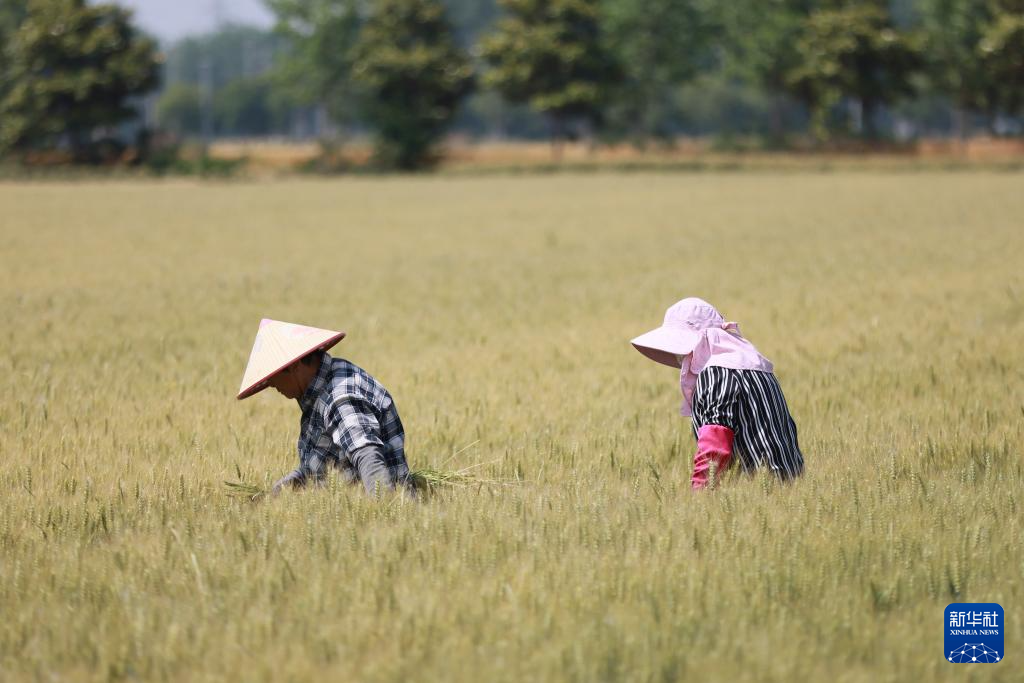 5月20日,浙江省余姚市黄家埠镇黄家埠村农户在田间收割小麦。