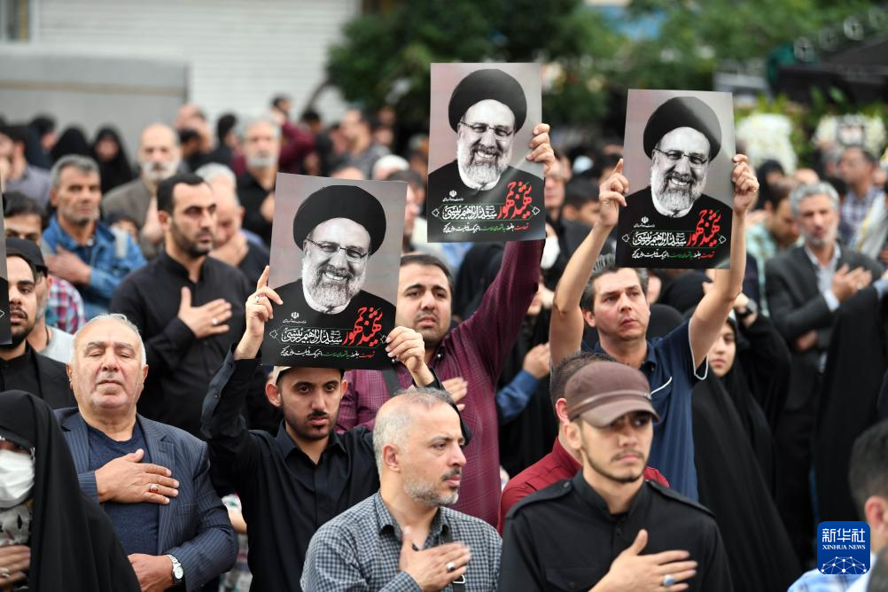 5月20日,在伊朗首都德黑兰,民众悼念直升机坠毁事件遇难者。