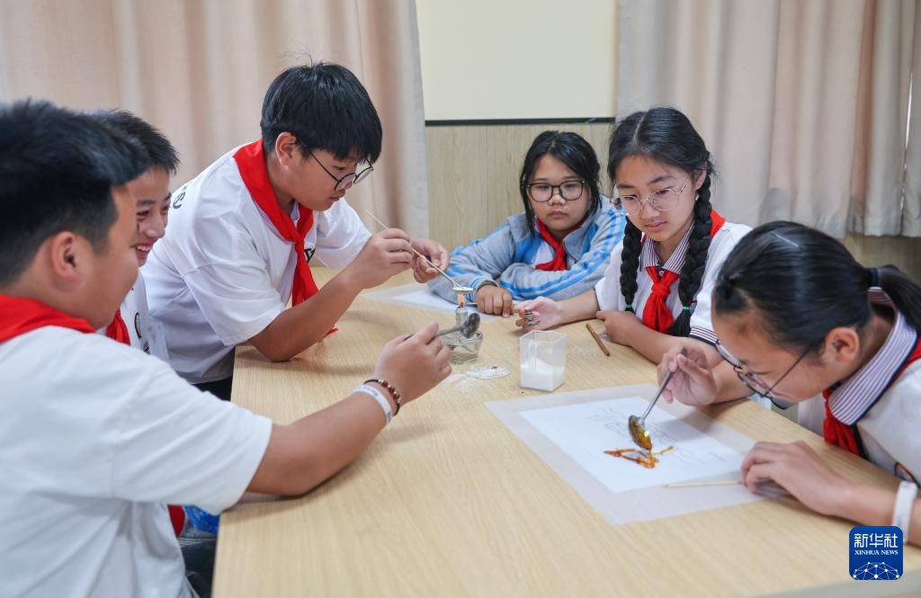 5月22日,太湖小学的学生们在特色课程上学习“糖画”制作。