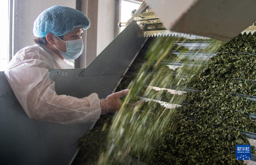 近日,湖北省孝感市大悟县金墩村抹茶基地进入采茶收尾阶段,村民忙着采摘、加工茶叶,供应市场。