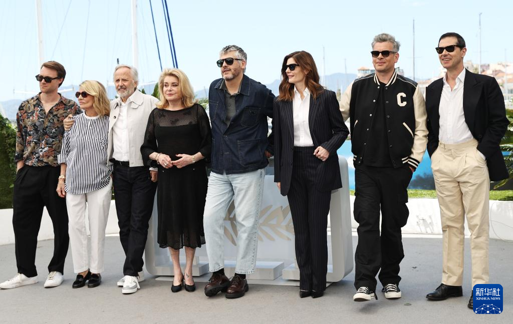 5月22日,在法国南部小城戛纳举行的第77届戛纳国际电影节上,法国导演克里斯托夫·奥诺雷(右四)携主创亮相影片《我的马赛洛》的拍照式。