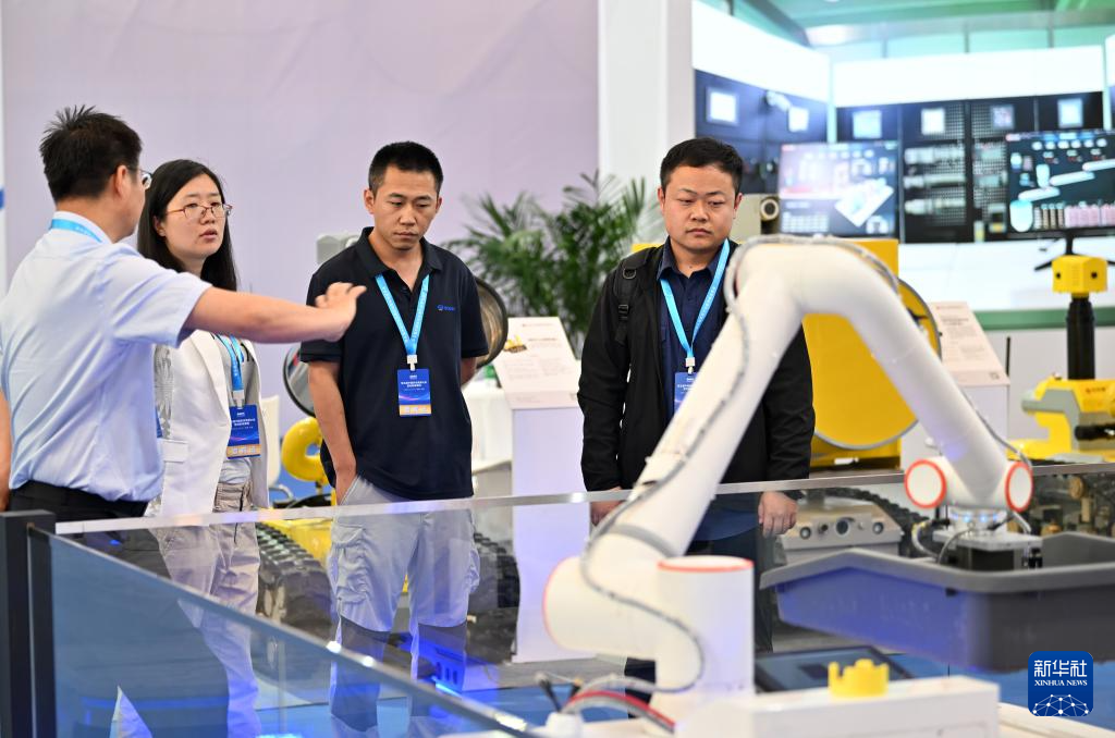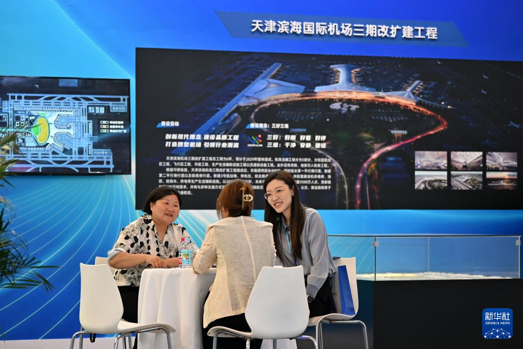 5月22日,在国家会展中心(天津),与会嘉宾在创新成果展上交流。