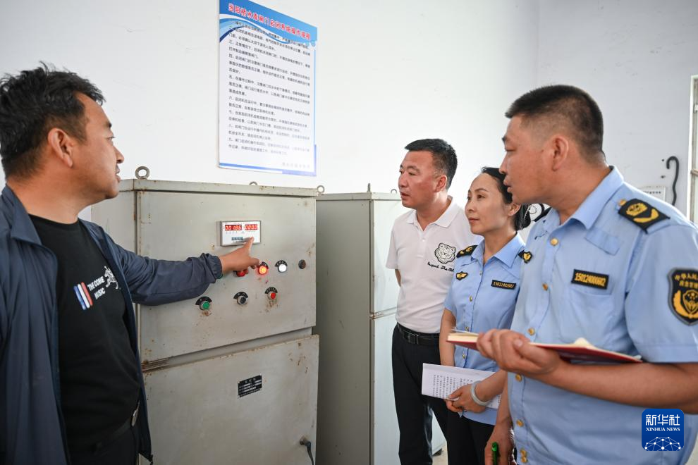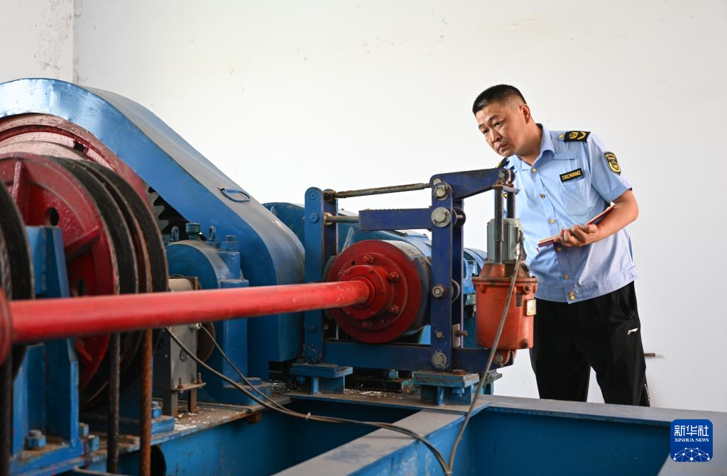 5月22日,工作人员在内蒙古呼和浩特市清水河县当阳桥水库查看闸门控制装置运行情况。