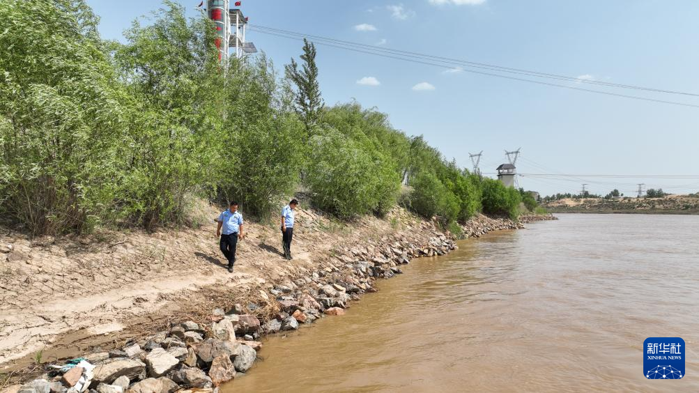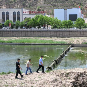 5月22日,工作人员在内蒙古呼和浩特市清水河县城关镇清水河河道巡查。