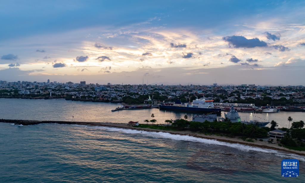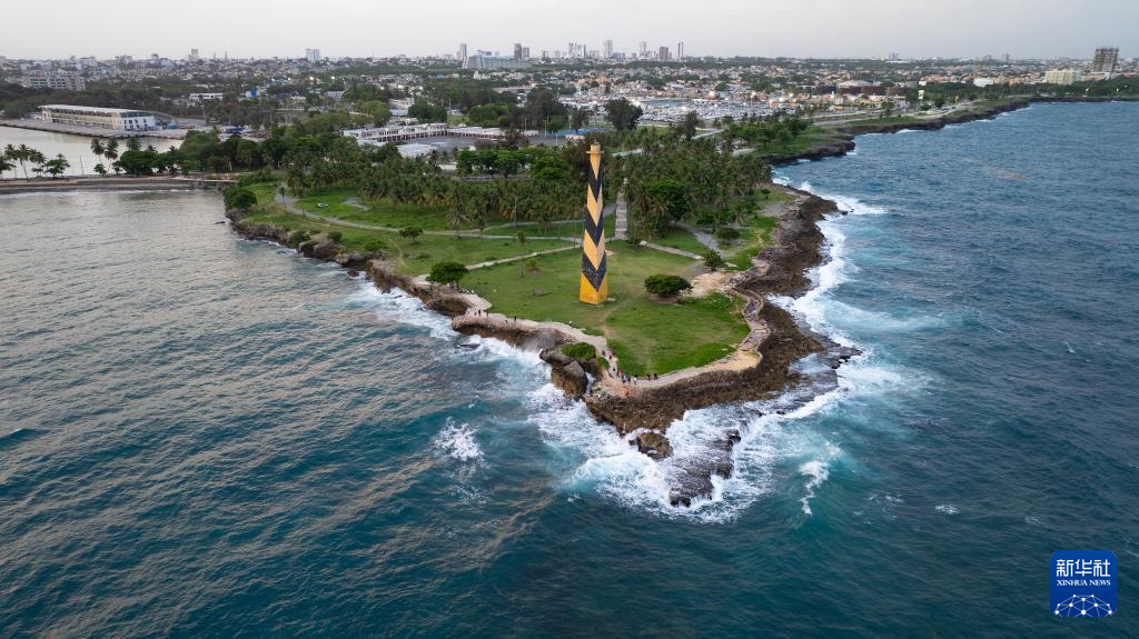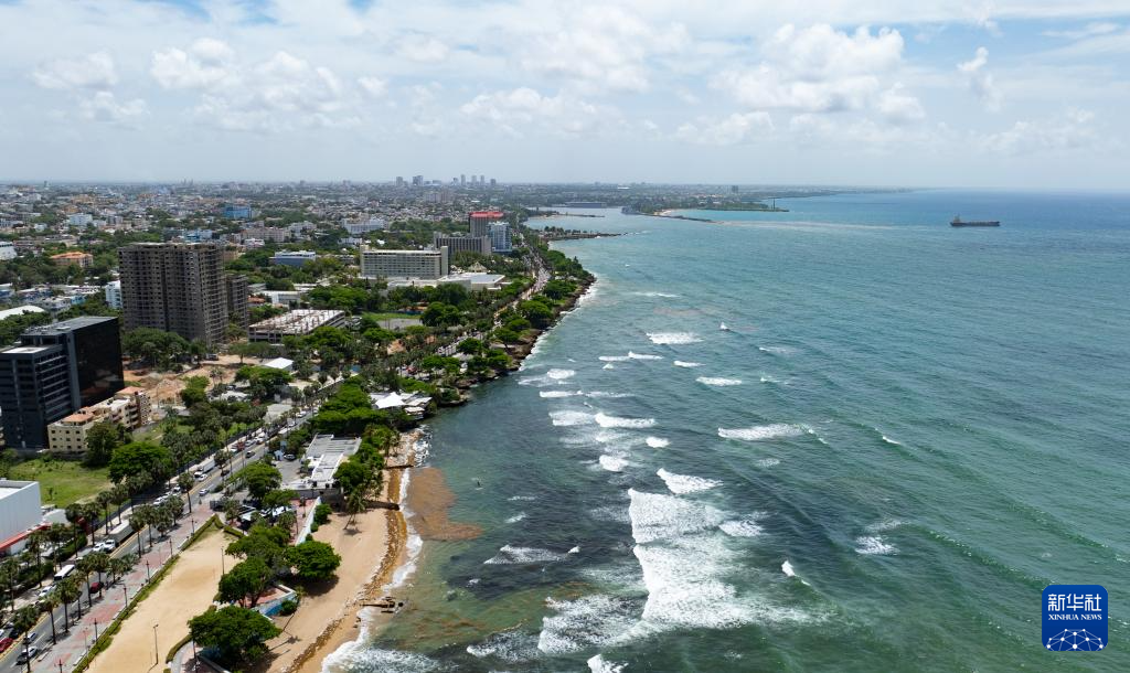 这是5月21日在多米尼加首都圣多明各拍摄的海岸线(无人机照片)。
